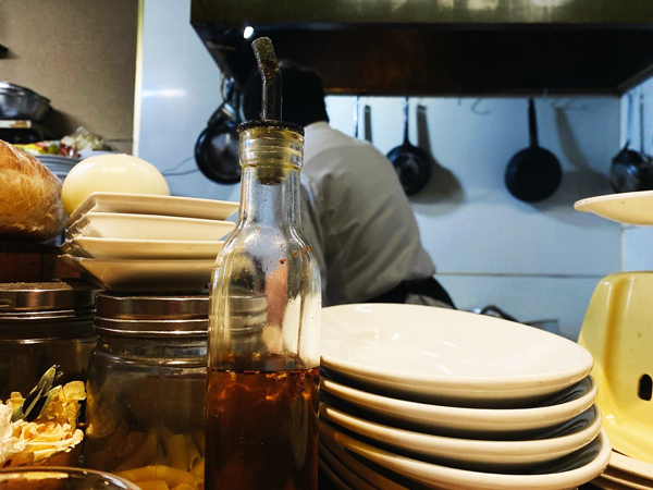 カウンターからは調理場も見ることのできるオープンキッチン。