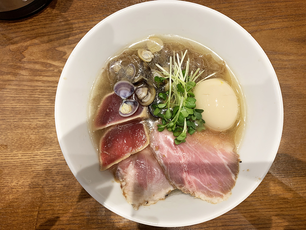 私は一択。鮪と蜆の貝だし冷麺890円ですが、味玉100円をプラスしました。