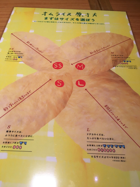 こちらのお店はオムライスのソースとサイズがいくつもあり選べます。