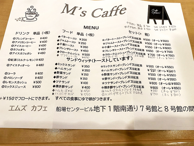 船場センタービル地下1階南通り、7号館と8号館の間にある「M’s caffe」(エムズカフェ)さんです。