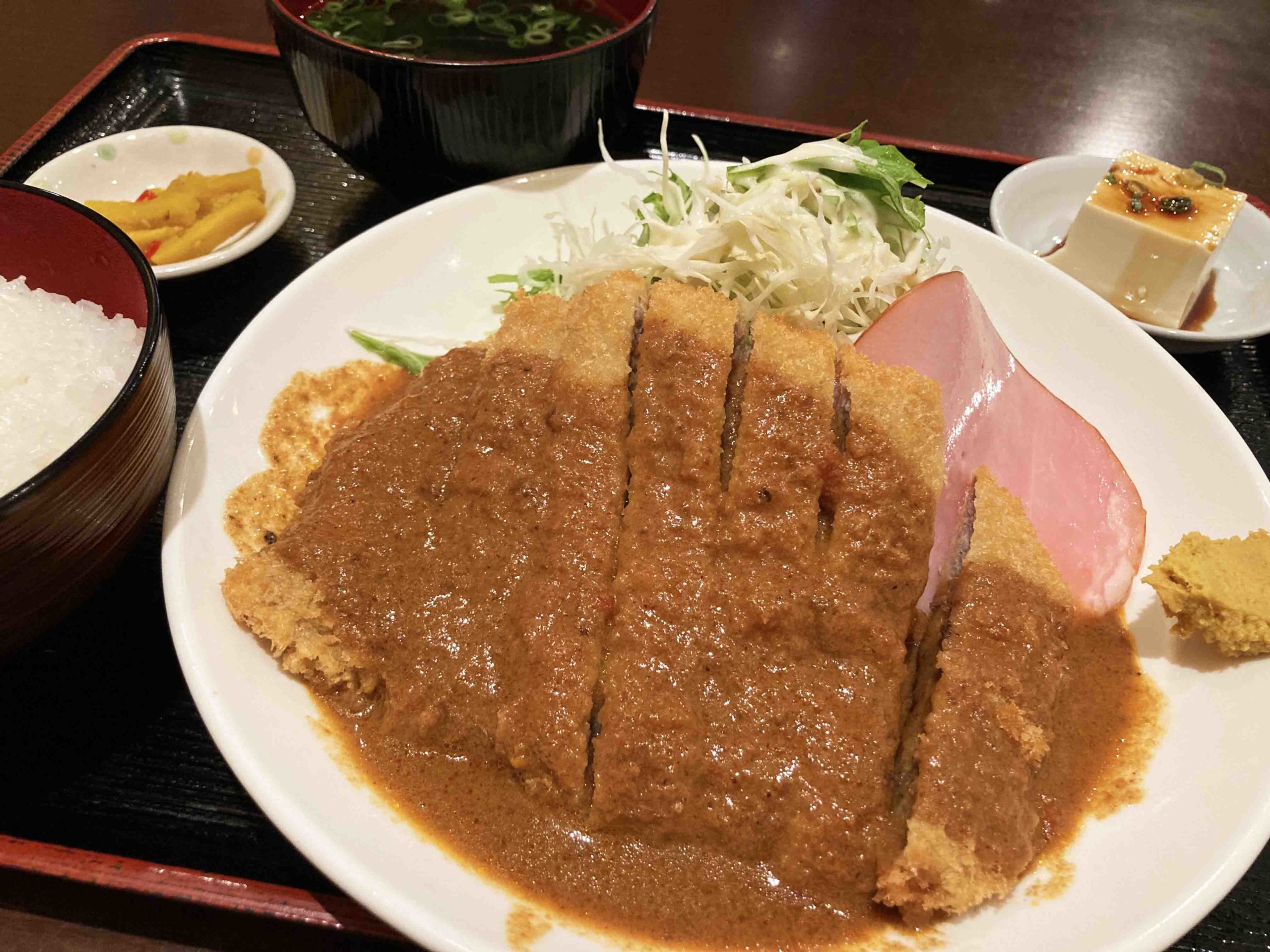ビフカツには、少し甘いデミソースがたっぷりかかっています。