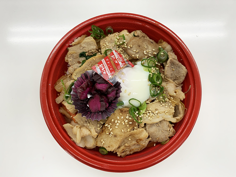 タレと絡めて焼いた豚がご飯のうえにたっぷり。