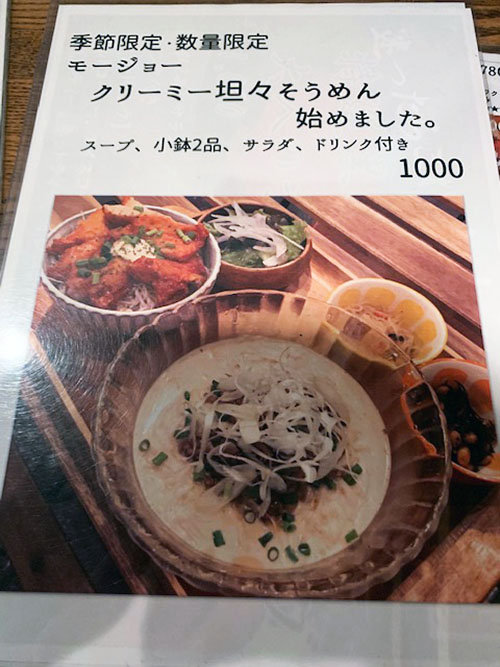 季節限定のモージョー クリーミ坦々そうめん1000円