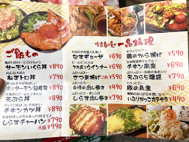 ご飯物から一品料理のメニュー