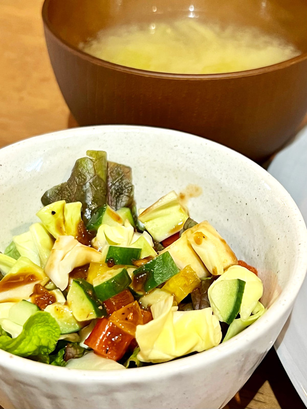 サラダのドレッシングも醤油系のようで微妙に違う。でもとっても美味しい。