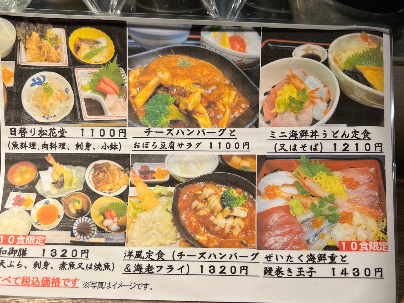 本日は日替り松花堂(¥1100税込)にいたします。(ちなみに別の日に通りかかった時のメニューでは¥990の日替わり定食というのもありました)