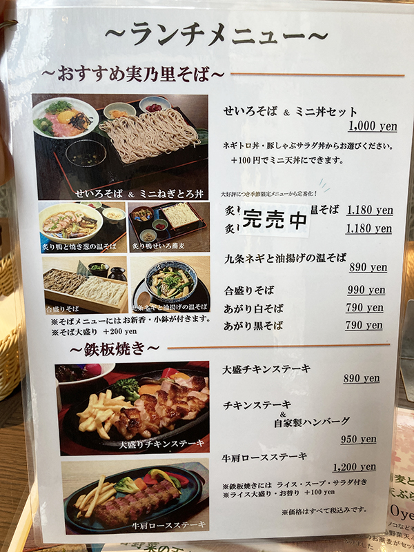 ランチメニュー。