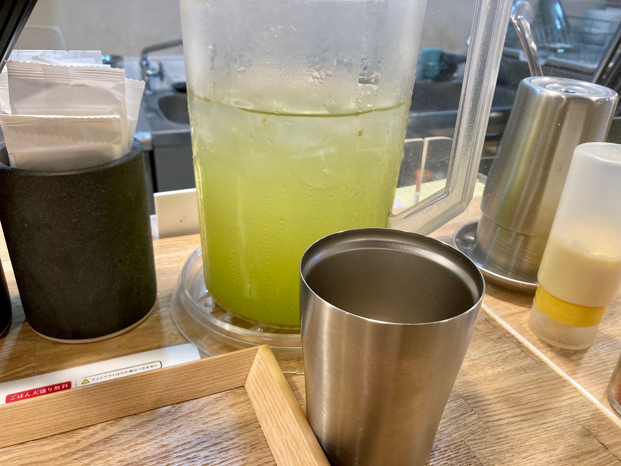 静岡県産の有機栽培緑茶を飲むことで、こってりとした肉丼の油っこさもスッキリ爽快。