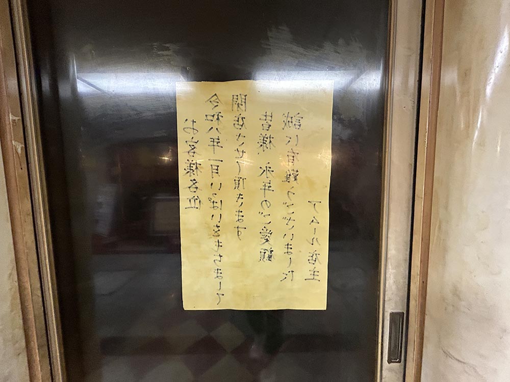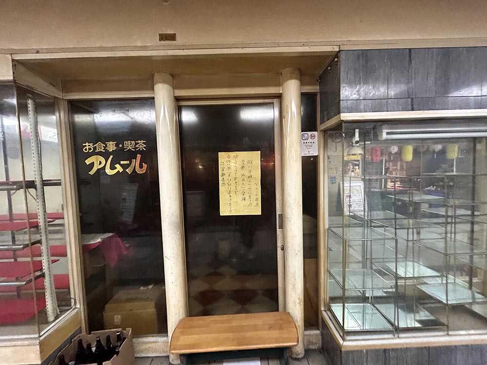 閉店の案内が、中に向けて張り出されているのがユニークですね。