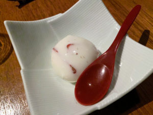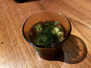 次は小さなグラスのような器に入ったそばが出てきました。めっちゃコシがあって、これまたうまい。そば好きなので、これだけでもいいくらい。