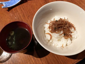 最後はじゃこご飯と味噌汁。