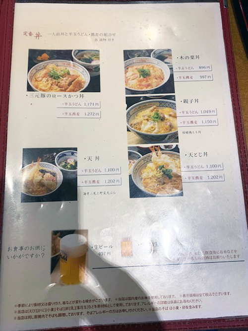 私の好きなカツ丼は650円なので、これを買って帰ろうか、とも思ったのですが、うどんが食べたくて来たので本末転倒。
