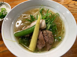さて、ラーメンは、鮪ほほ肉チャーシュー、鶏檸檬チャシュー、インゲンにヤングコーン、水菜などが入っています。