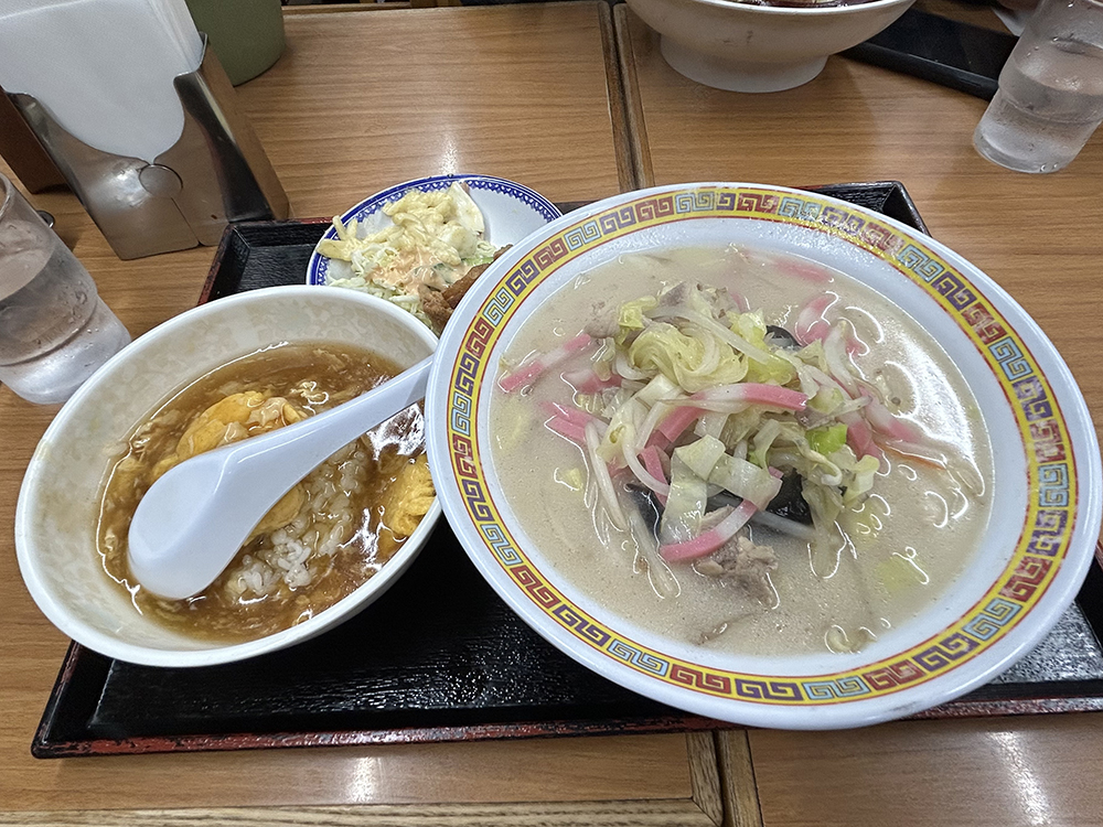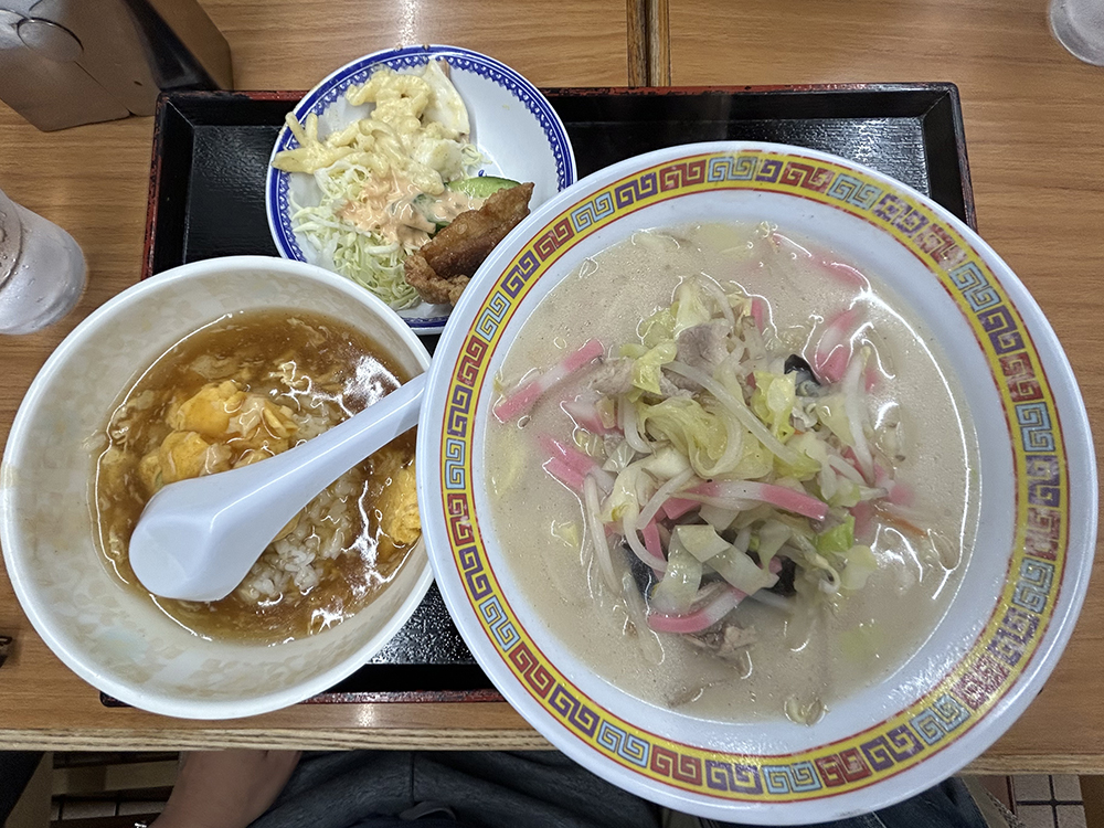 今日の日替わりは、長崎チャンポンとミニ天津飯、からあげで900円