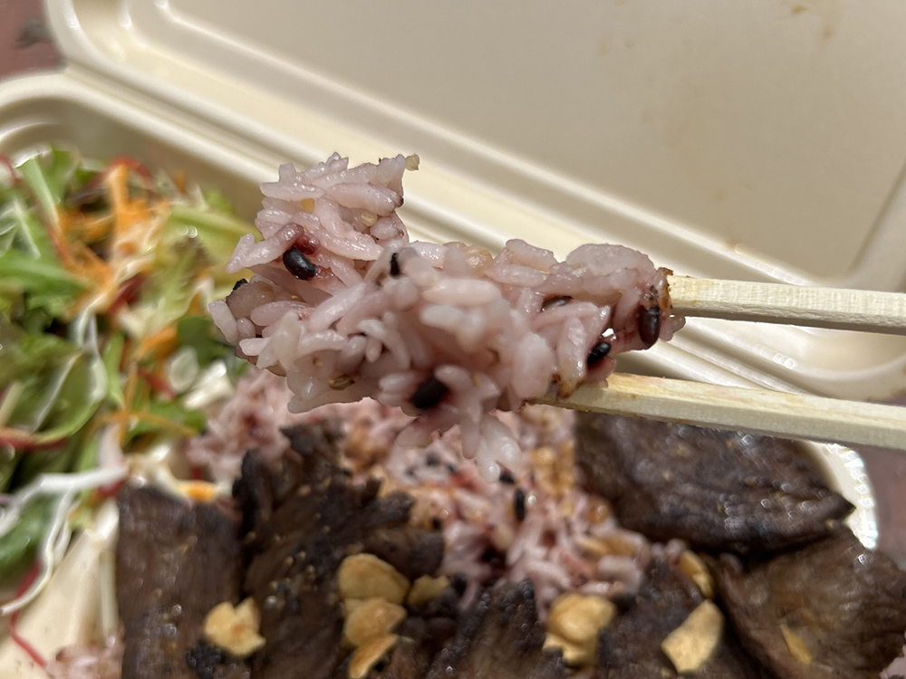 白米か雑穀米が選べるので、雑穀米を選んでのですが、ハワイアン醤油ベースのソースがいい具合でご飯が進みます!