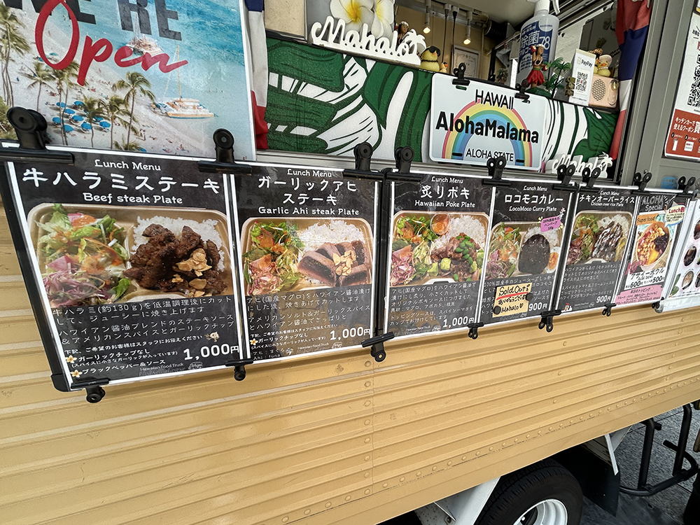 牛ハラミステーキやロコモコ、アヒなどがあります。