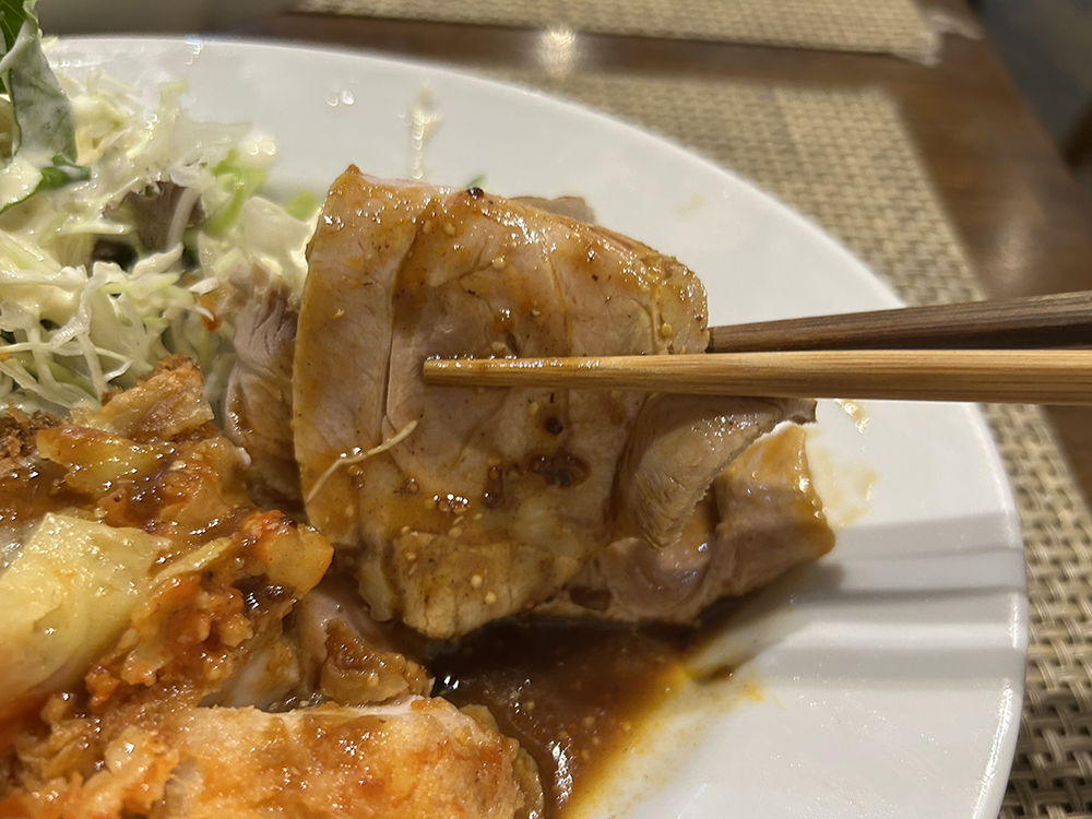 しっとりと柔らかいポークに、マスタードが入ったデミソースが合う。