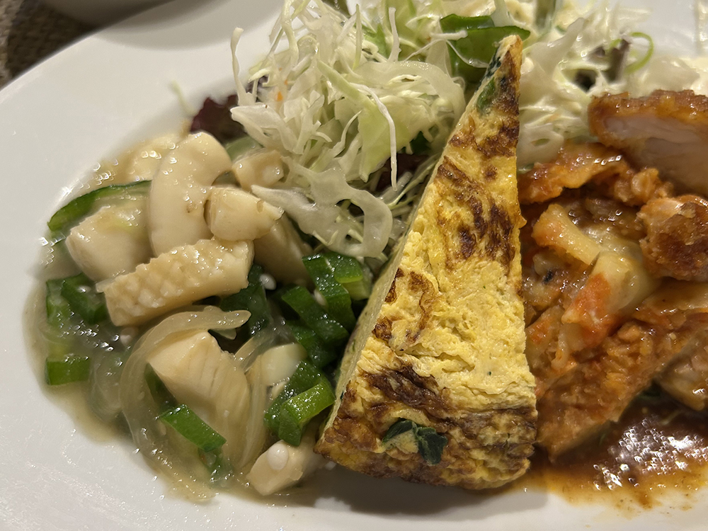 さらに、ソーセージとホウレン草のフリッタータ、イカとオクラの和風マリネもついています。