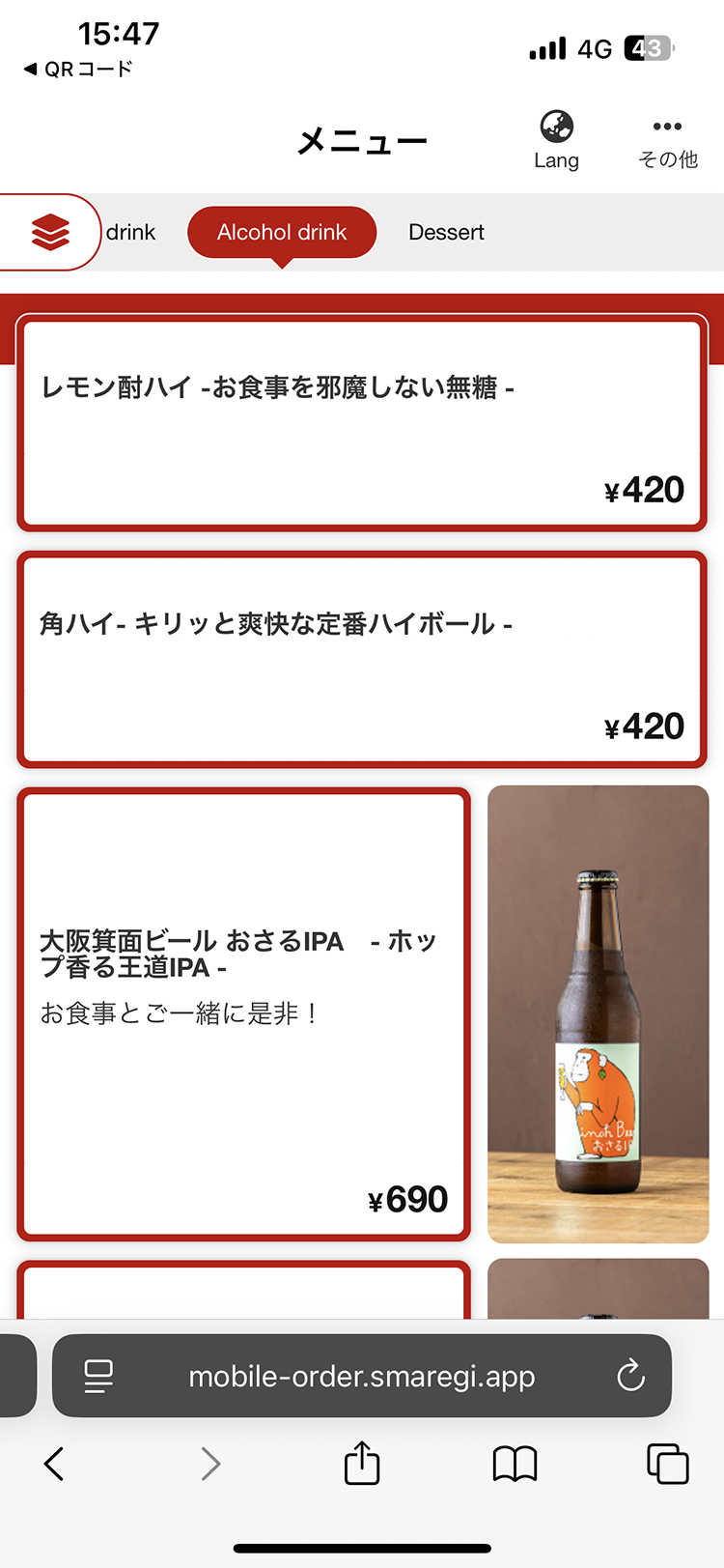ビールやデザートもあります。