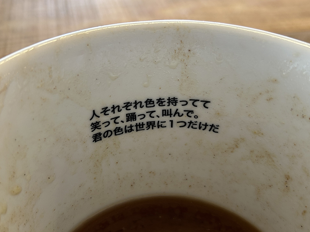 食べ進めると、丼にメッセージが。
