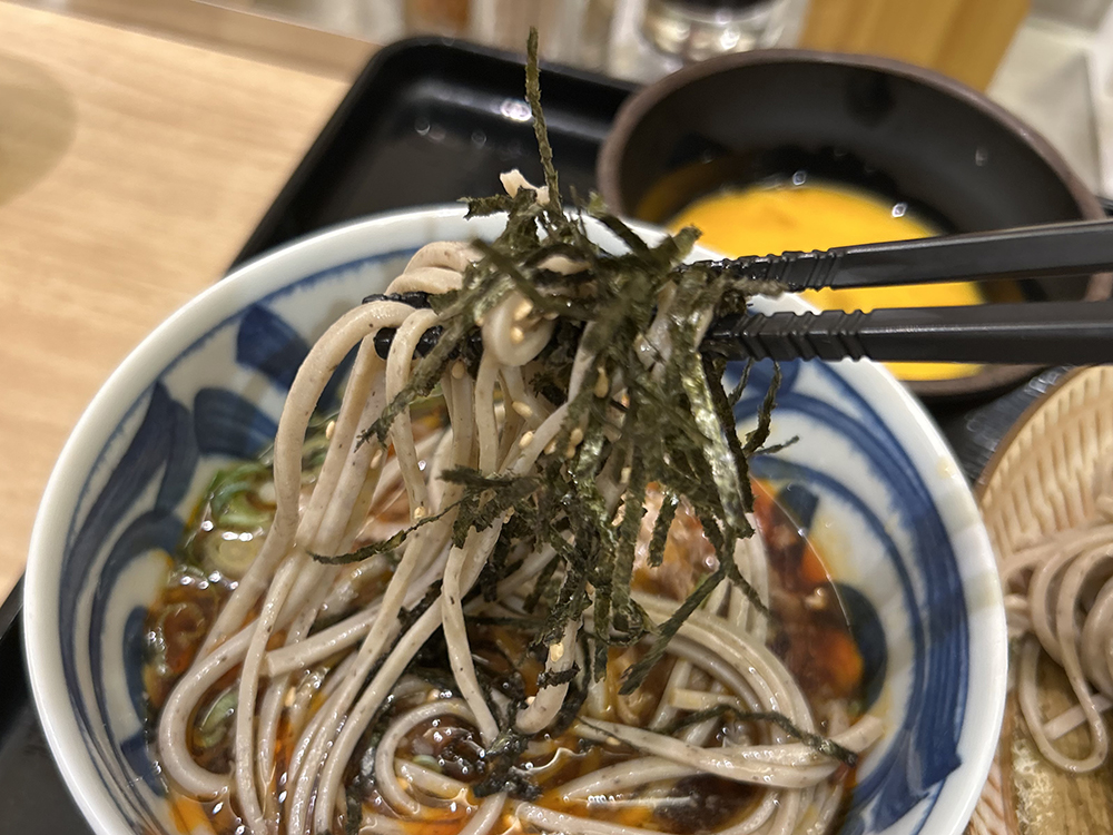 25年7/8リニューアルオープン!ピリ辛で食欲がそそられます!「10そば」のピリ辛肉つけそば