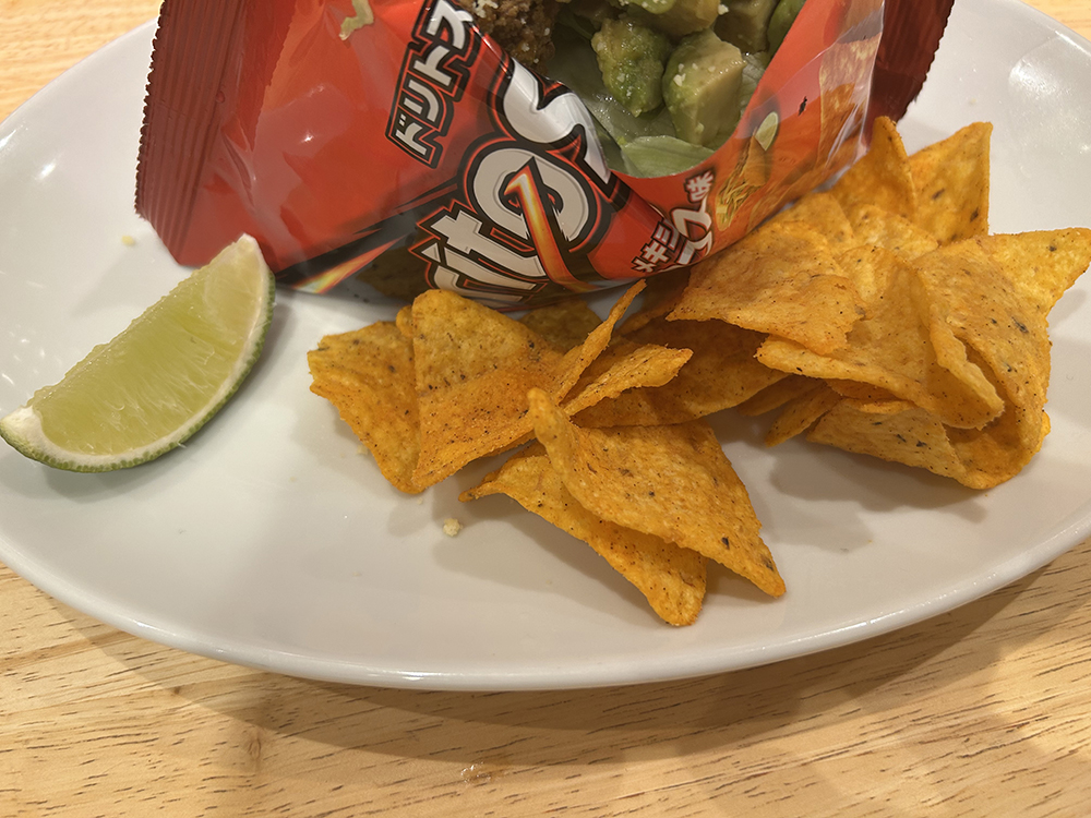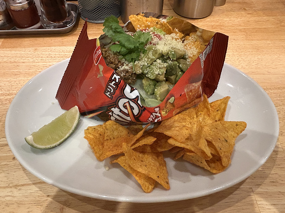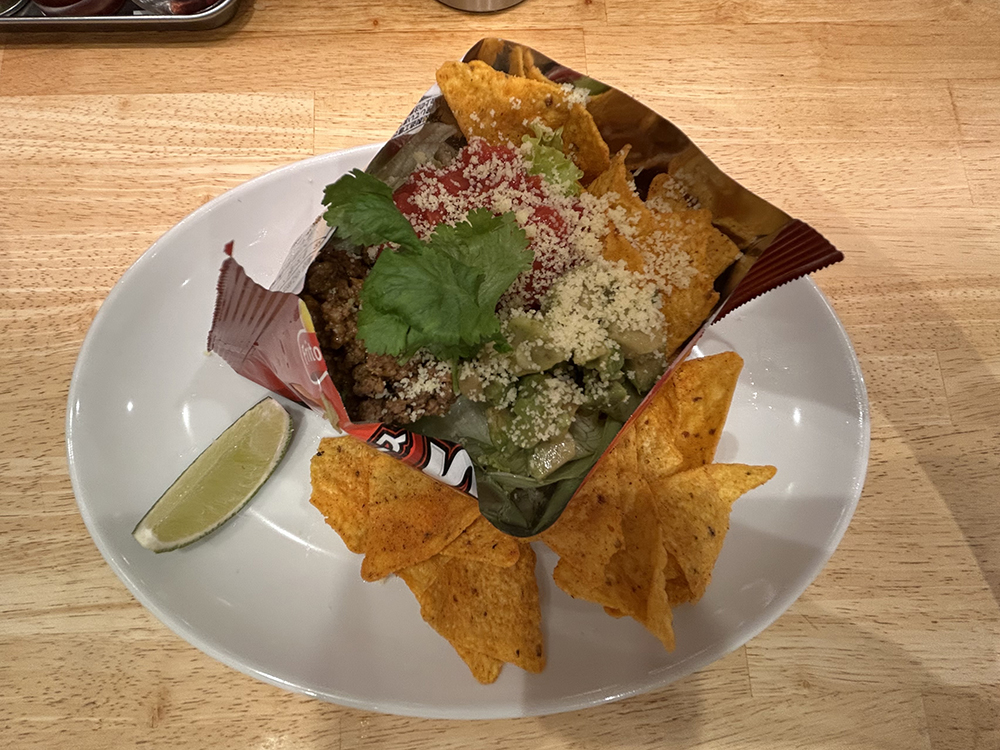付け合わせのドリトスも、そのまま食べてもいいし、混ぜるとさらに味が濃厚になっておいしいです。