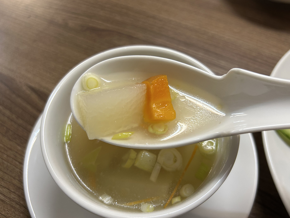 スープは、大きくカットされた大根と人参、