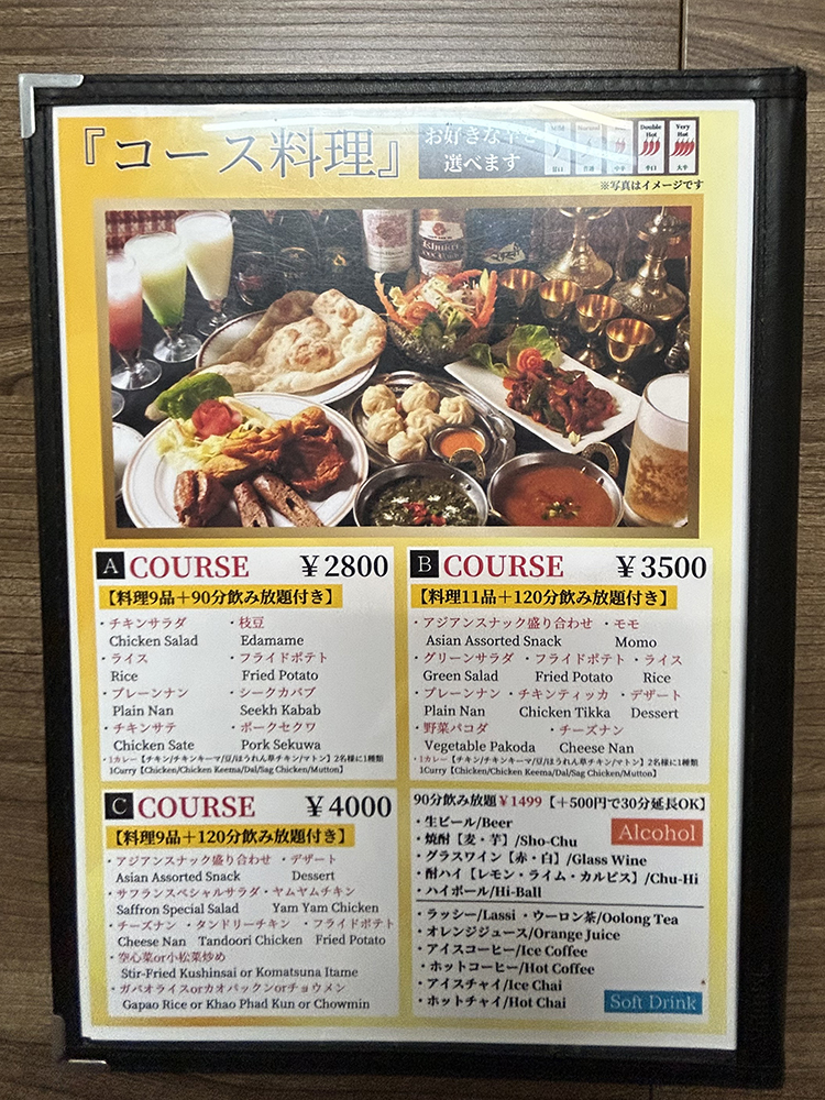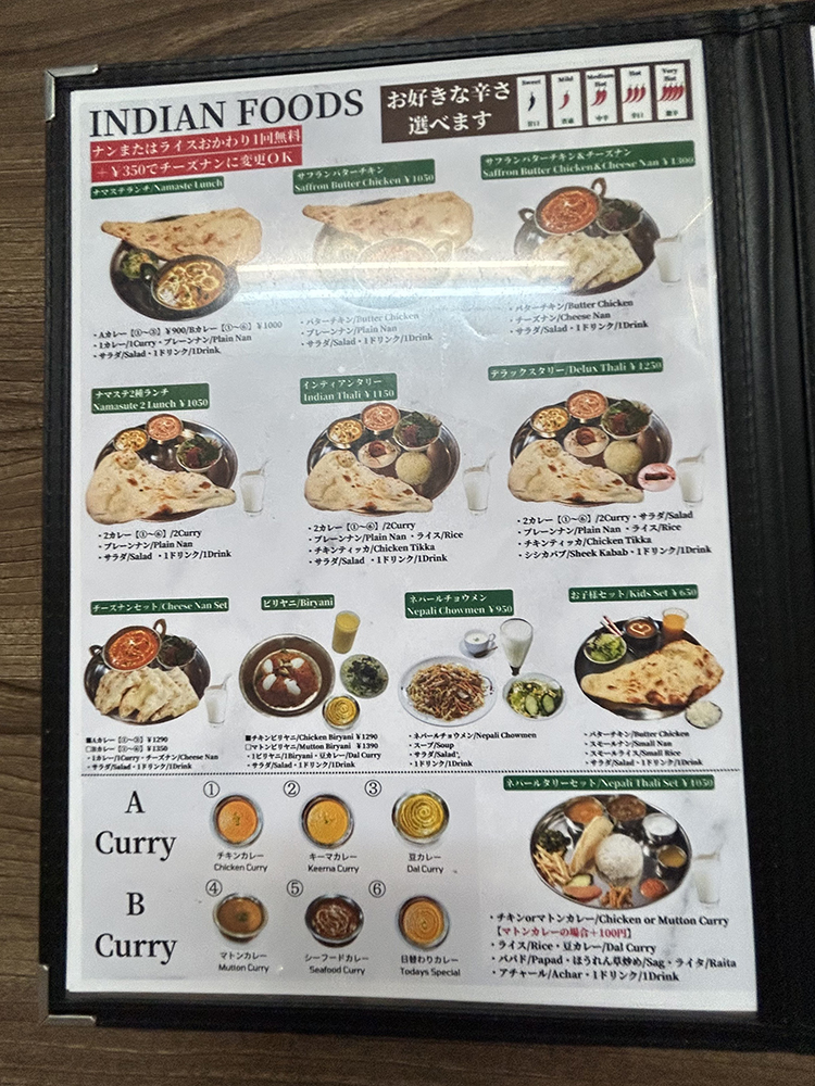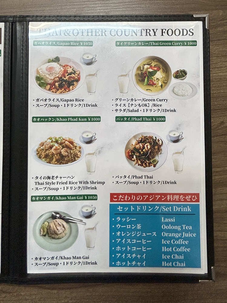 インドカレーのセットやネパール料理、タイ料理などがあります。