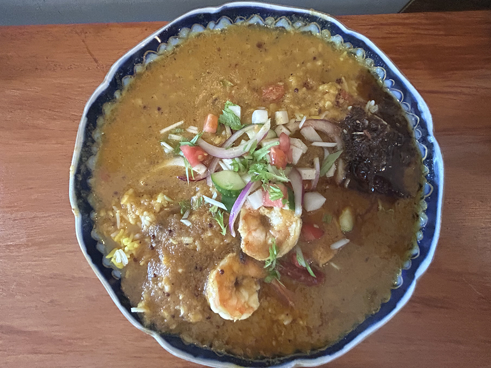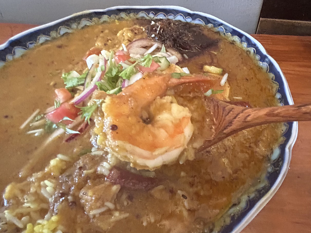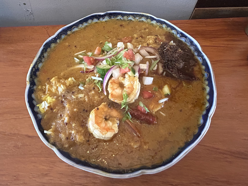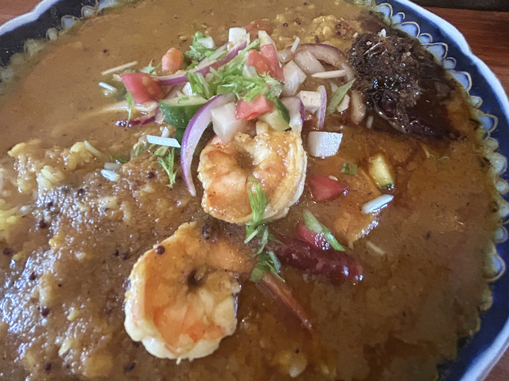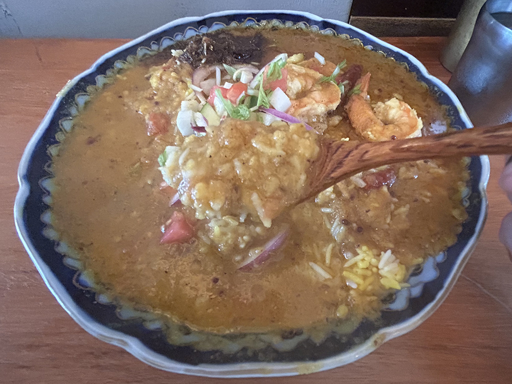 エビのカレーは、少し酸味もありきりっとした味わいです。