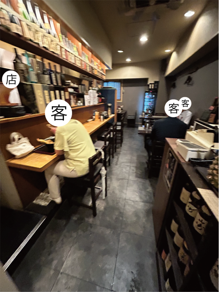 店内は左側にカウンター、右と奥にテーブル席があります。