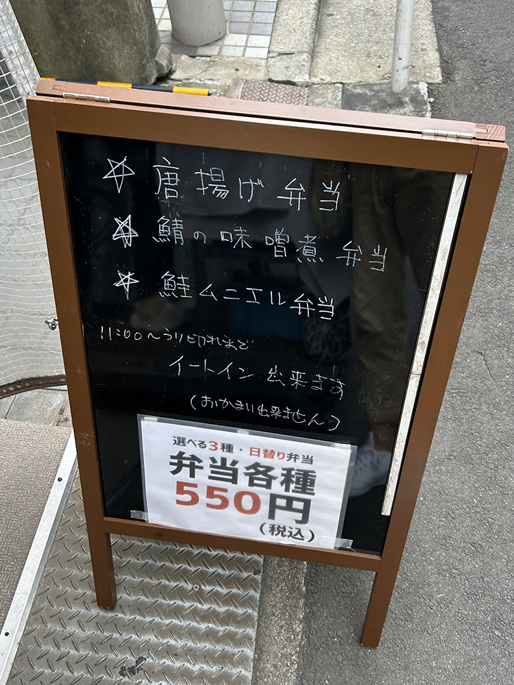 お弁当は日替わりで3種類。すべて550円です。