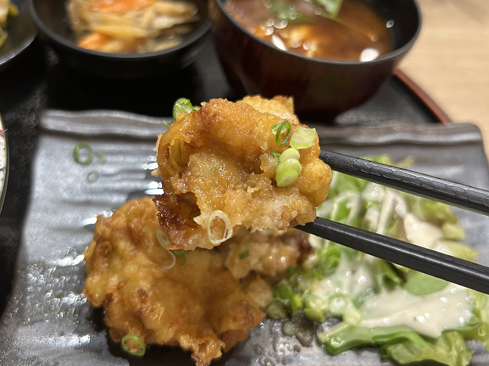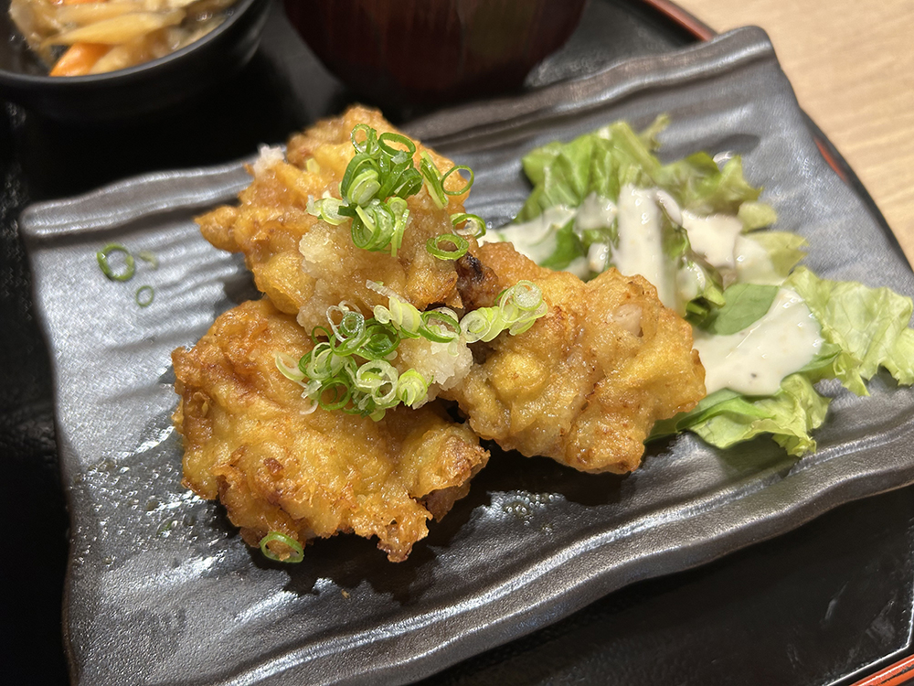 「お造り定食とサバorカマの塩焼き定食が終わっていて、サイドメニューは、カキフライがなくなったのでささみチーズフライに変更になっています」とのこと…。