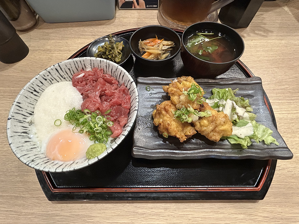 というわけで、マグロの山掛丼+とり天ポン酢にしました。