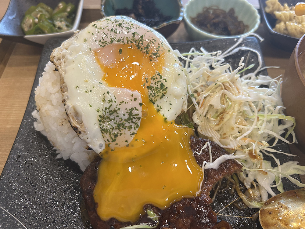 25年8/27オープン!卵とろ〜り、副菜も充実!「おっとり」のロコモコ定食