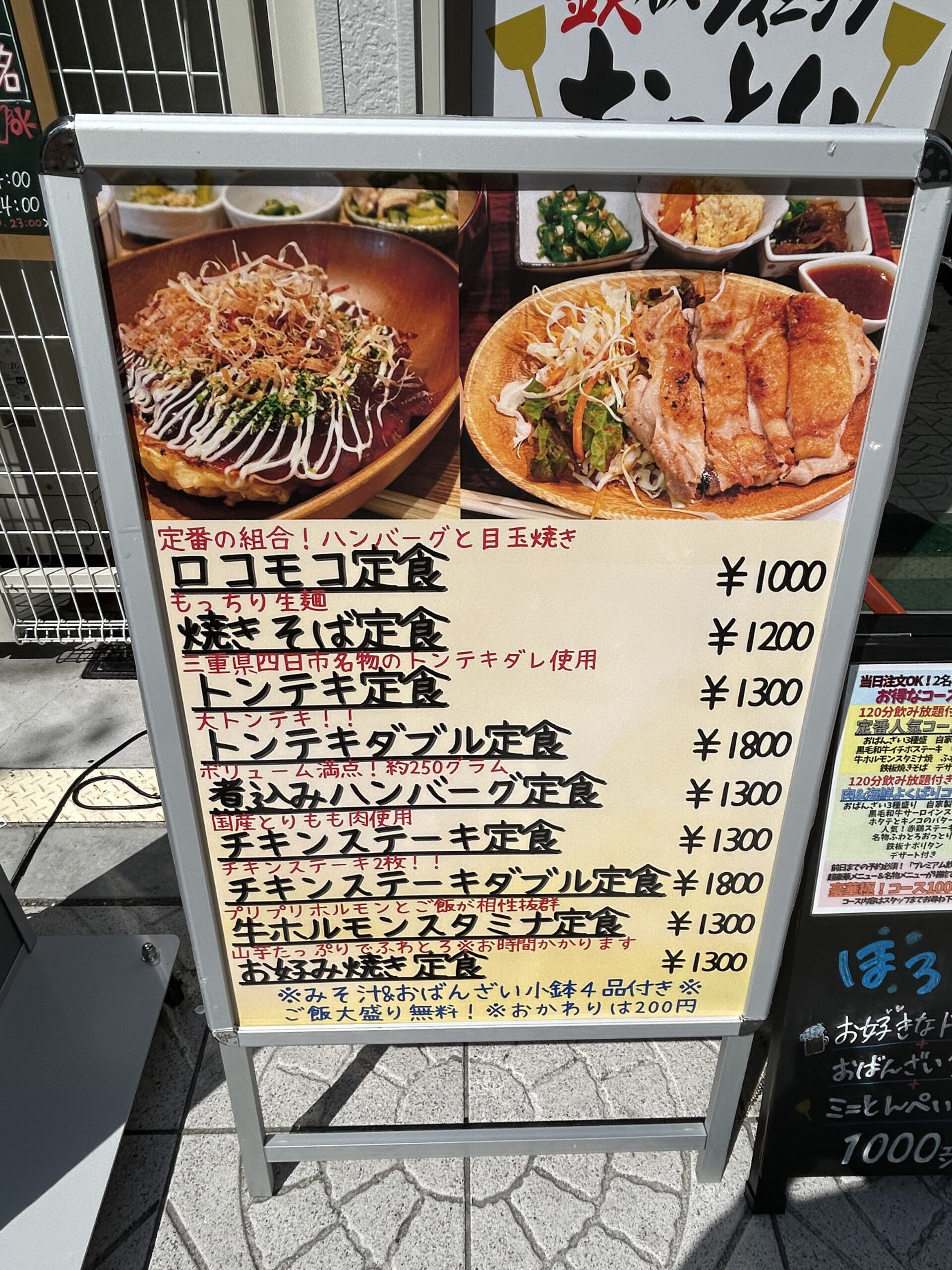 鉄板焼きのお店なので、焼きそばやお好み焼き定食などもあります。