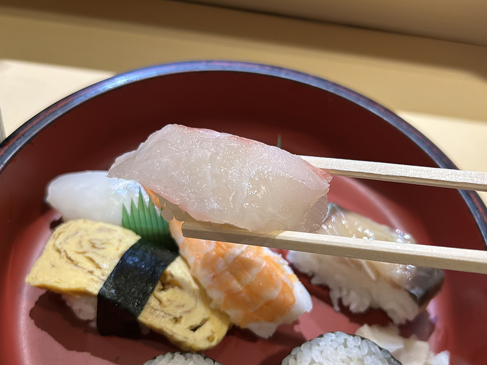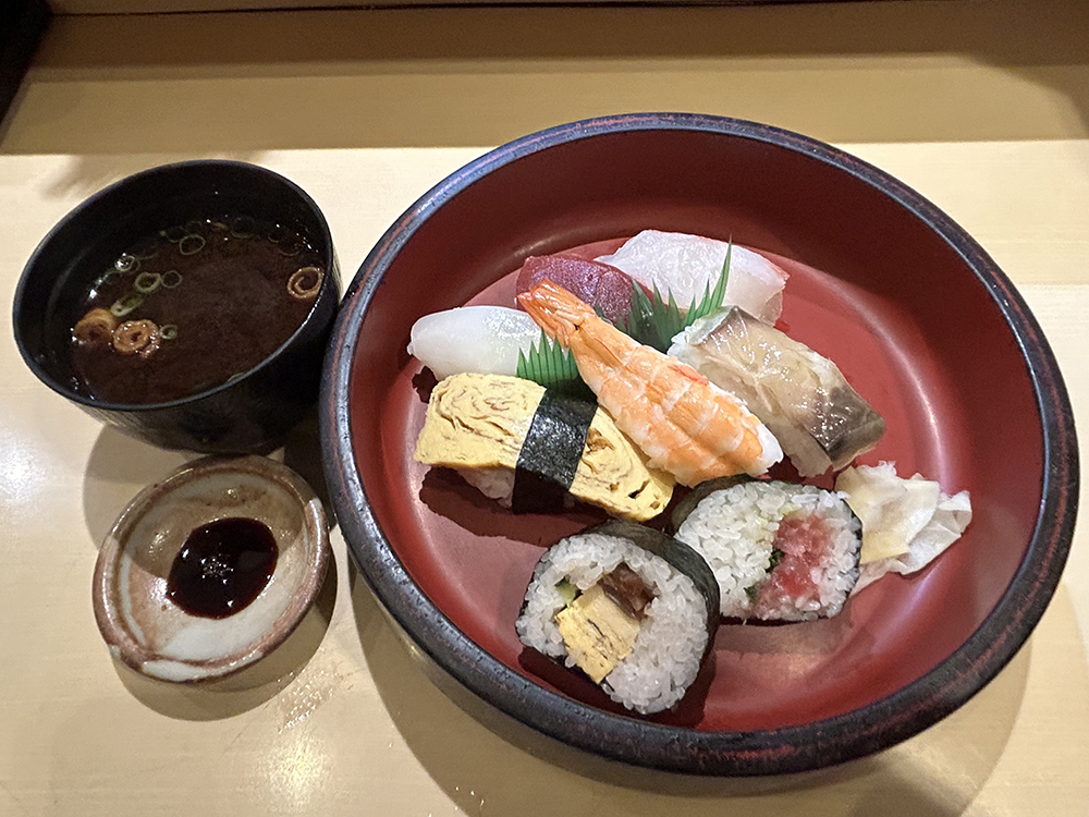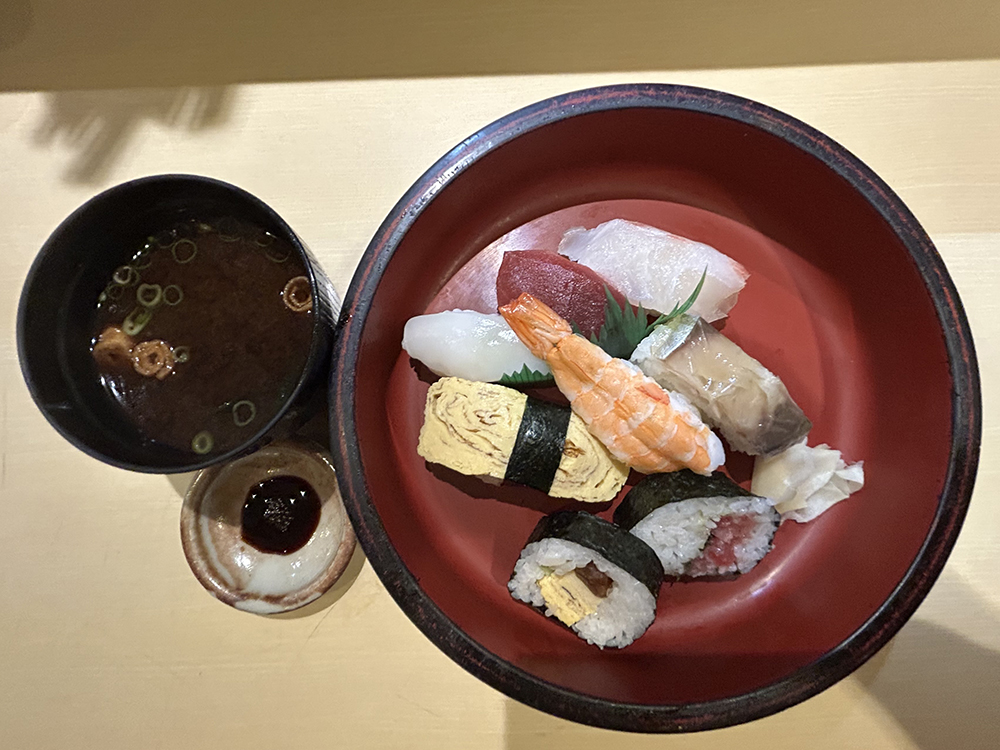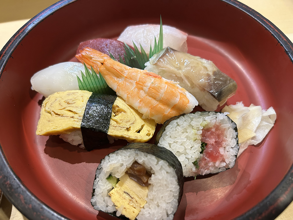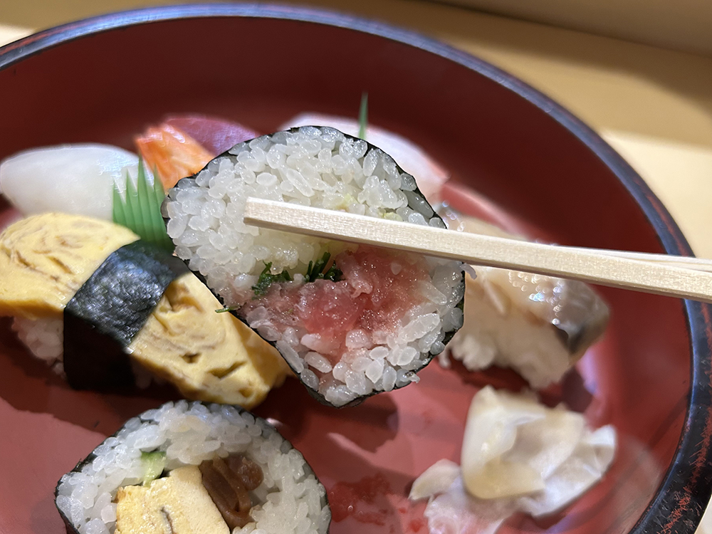 すしは、握り6かんと巻物が2つです。