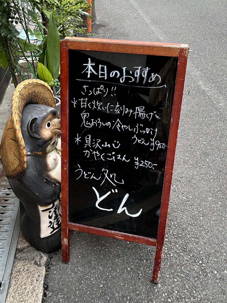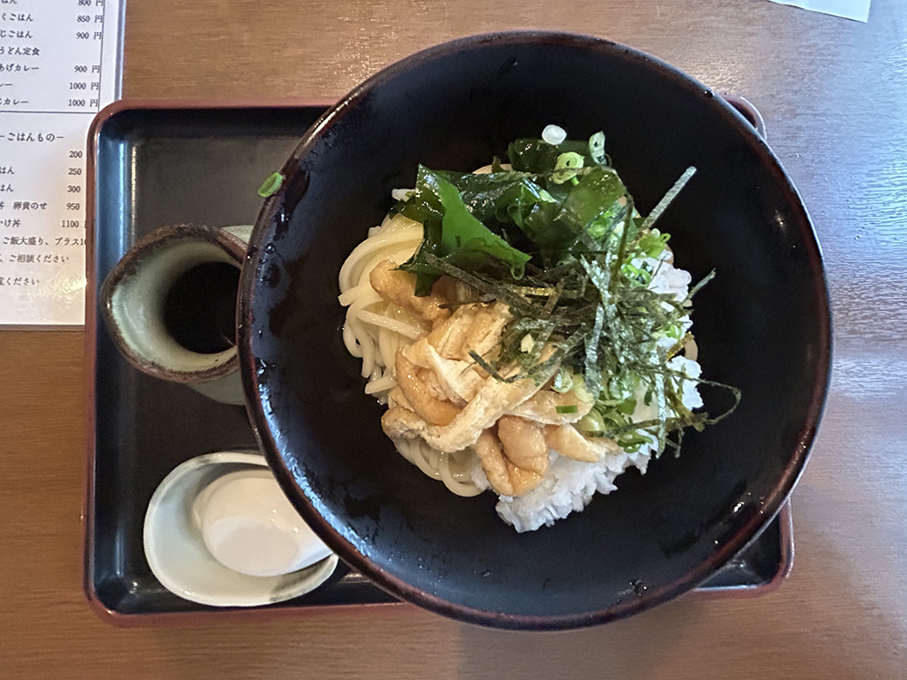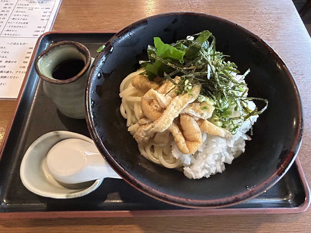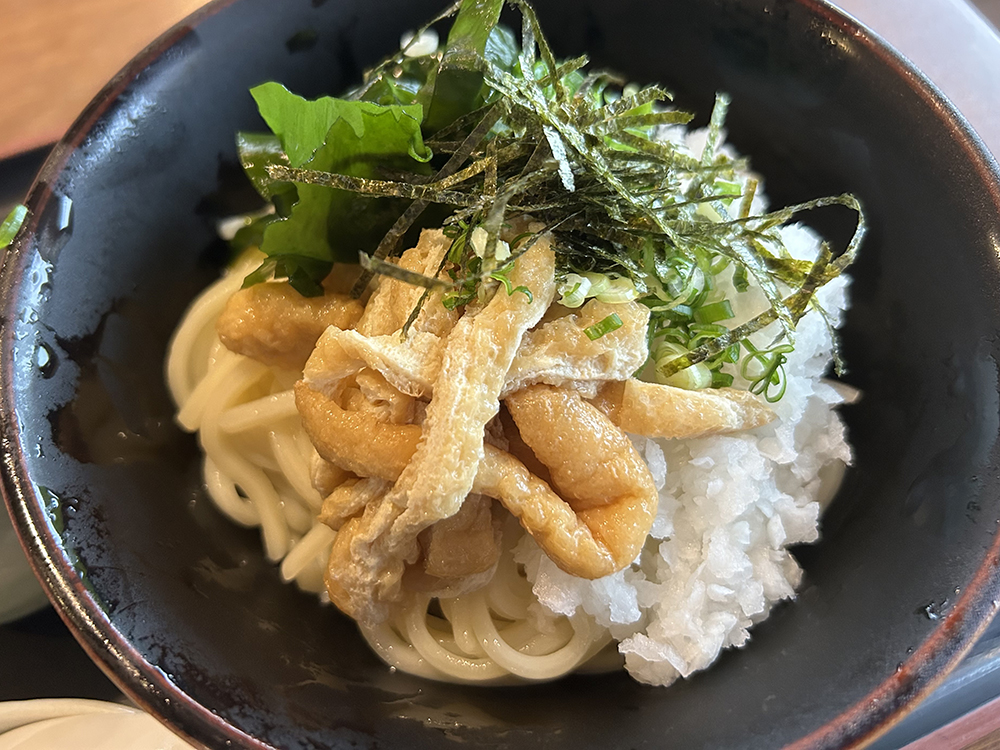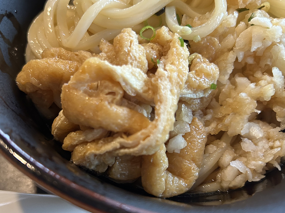 本町にある「どん」で、甘く炊いた刻み揚げと鬼おろしの冷やしぶっかけうどんを食べてきました。