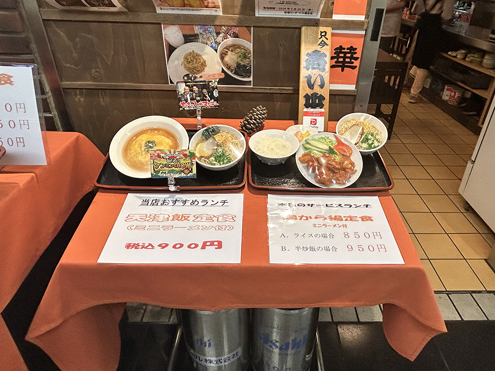 おすすめは天津飯定食。サービスランチは鶏から揚定食です。