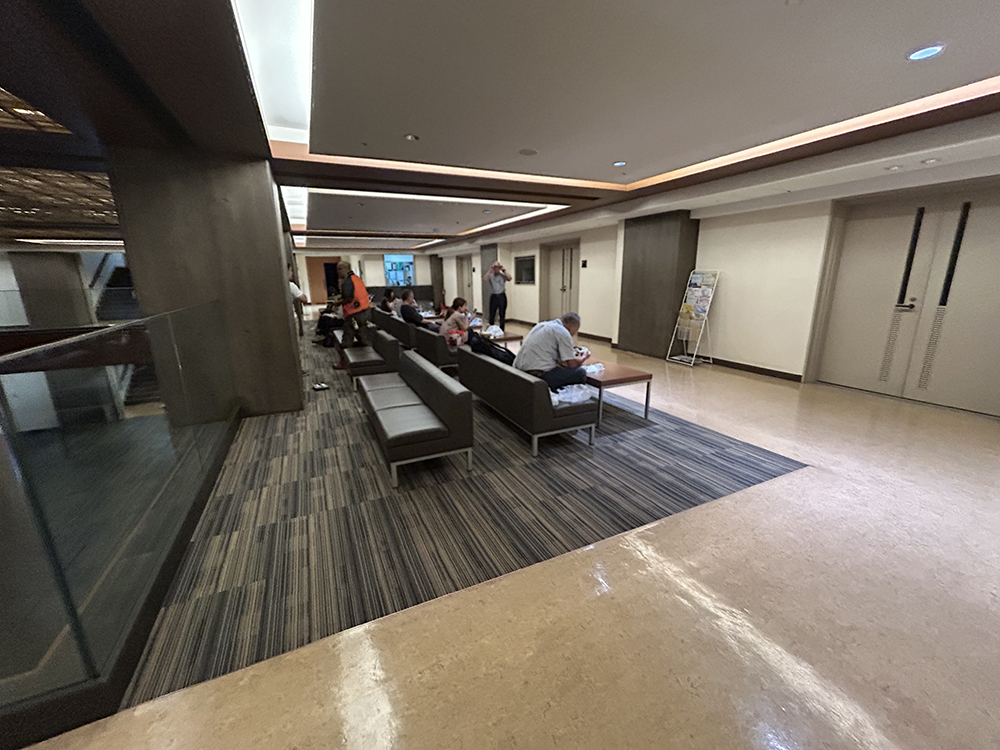 北御堂は自由に入れるので、ランチタイムは庭やロビーなどに