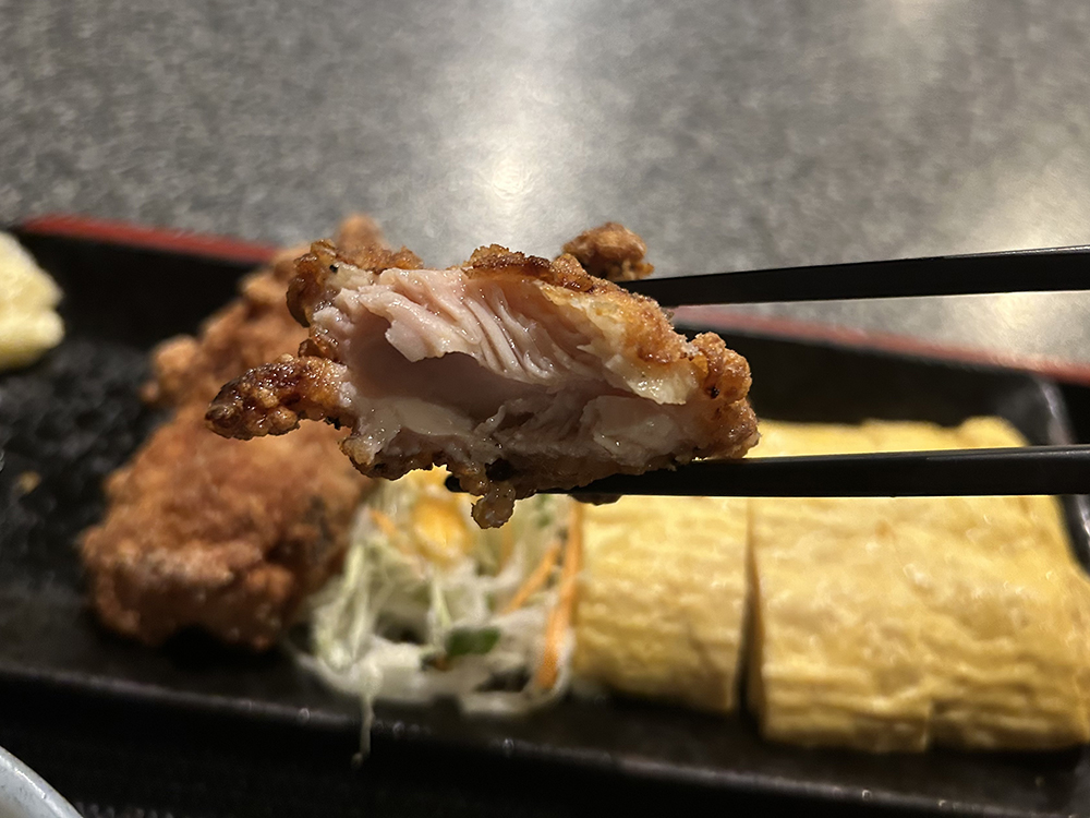 唐揚げは、からっとしているようで、しっとりしている不思議な衣の食感。