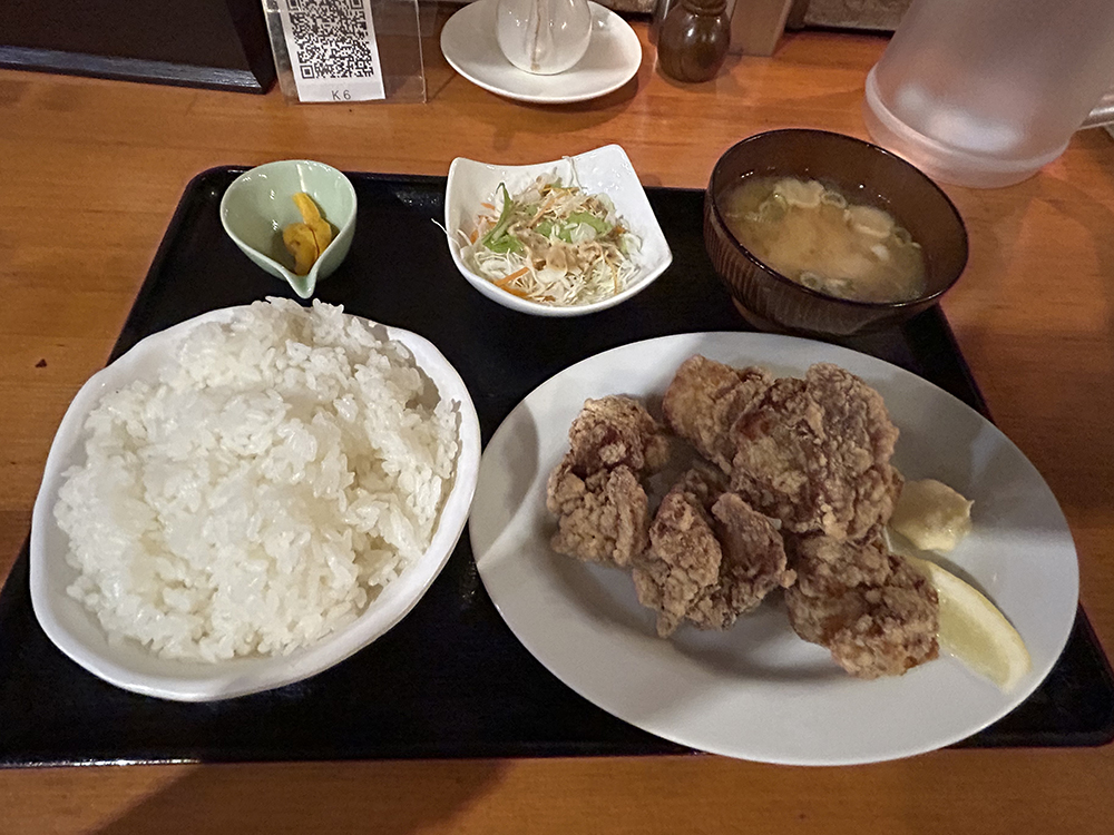 私は鶏唐揚げ定食750円を注文しました。
