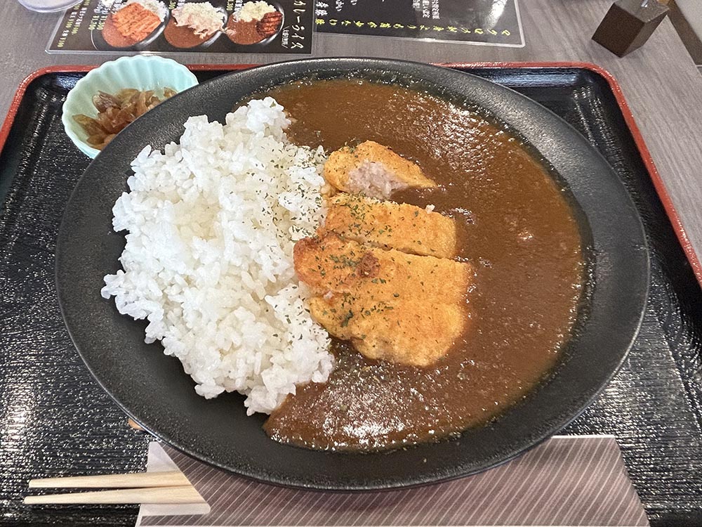 別皿で福神漬けがついているので、一緒に乗せて食べましょう。