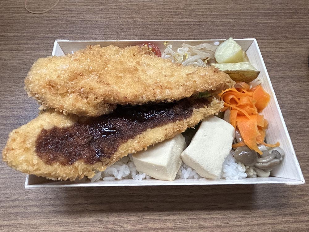 確かに、蓋が閉まらないほど大きなチキンカツが2枚!
