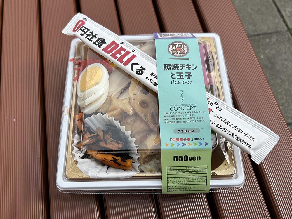 瓦町に出店している「瓦町食堂」で、照焼チキンと玉子弁当を買って食べました。