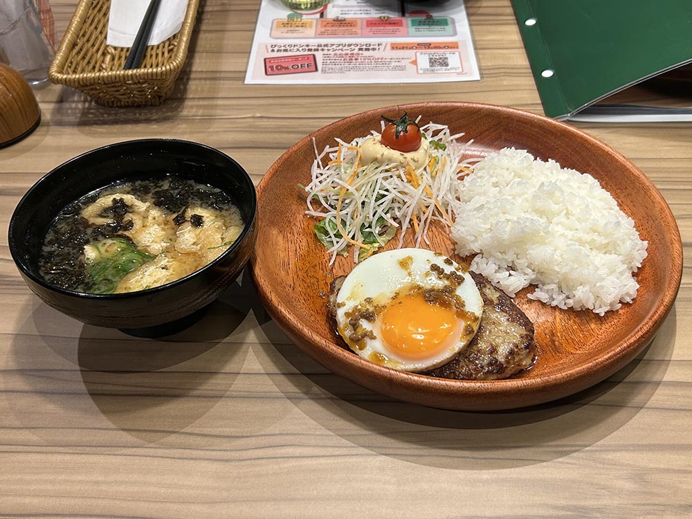 25年11/21オープン!安心のおいしさですね。「びっくりドンキー」のエッグバーグディッシュランチ