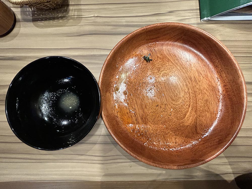 昼のピークを終えて待っている人は0人でしたが、ちょうど食事を終えて会計する人がどばっと出てきて、3分くらい待ってから案内してもらいました。