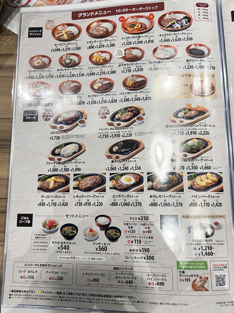 30年くらい前ならエッグバーグディッシュも700円くらいで食べられたのに、物価の上昇を実感させられますね。