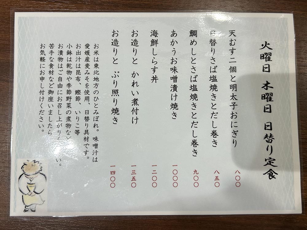 鯛めしとさば塩焼きとだし巻き900円にします。