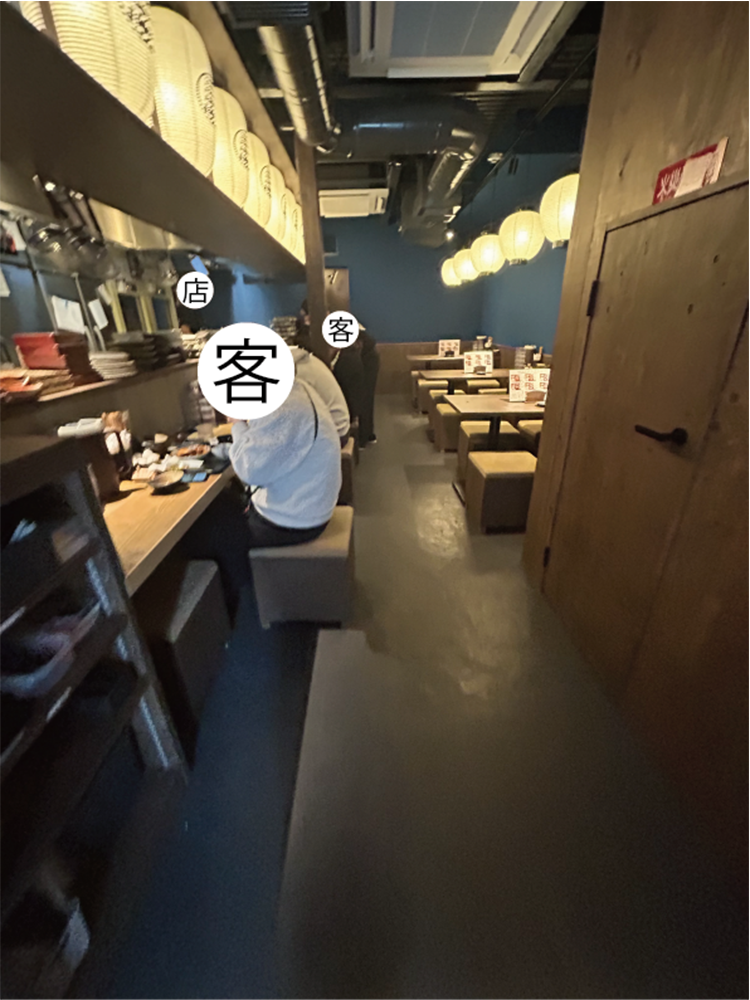 店内は左側にカウンター、右側にテーブル、2階、3階もあるようです。