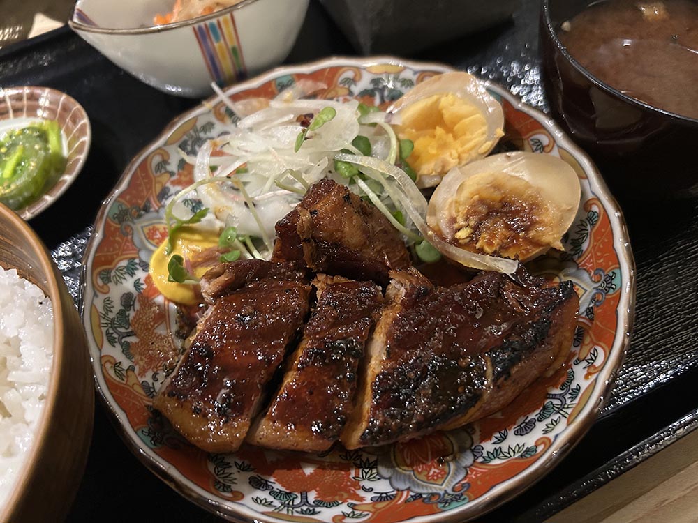 本町にオープンした「炭や わだち」で、炭火焼き焼豚と味玉定食を食べてきました。